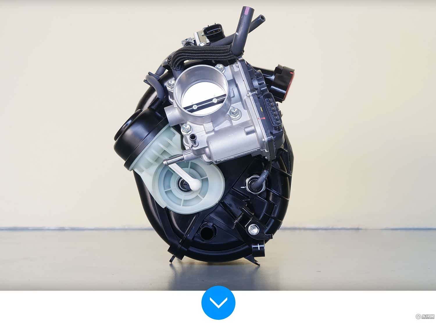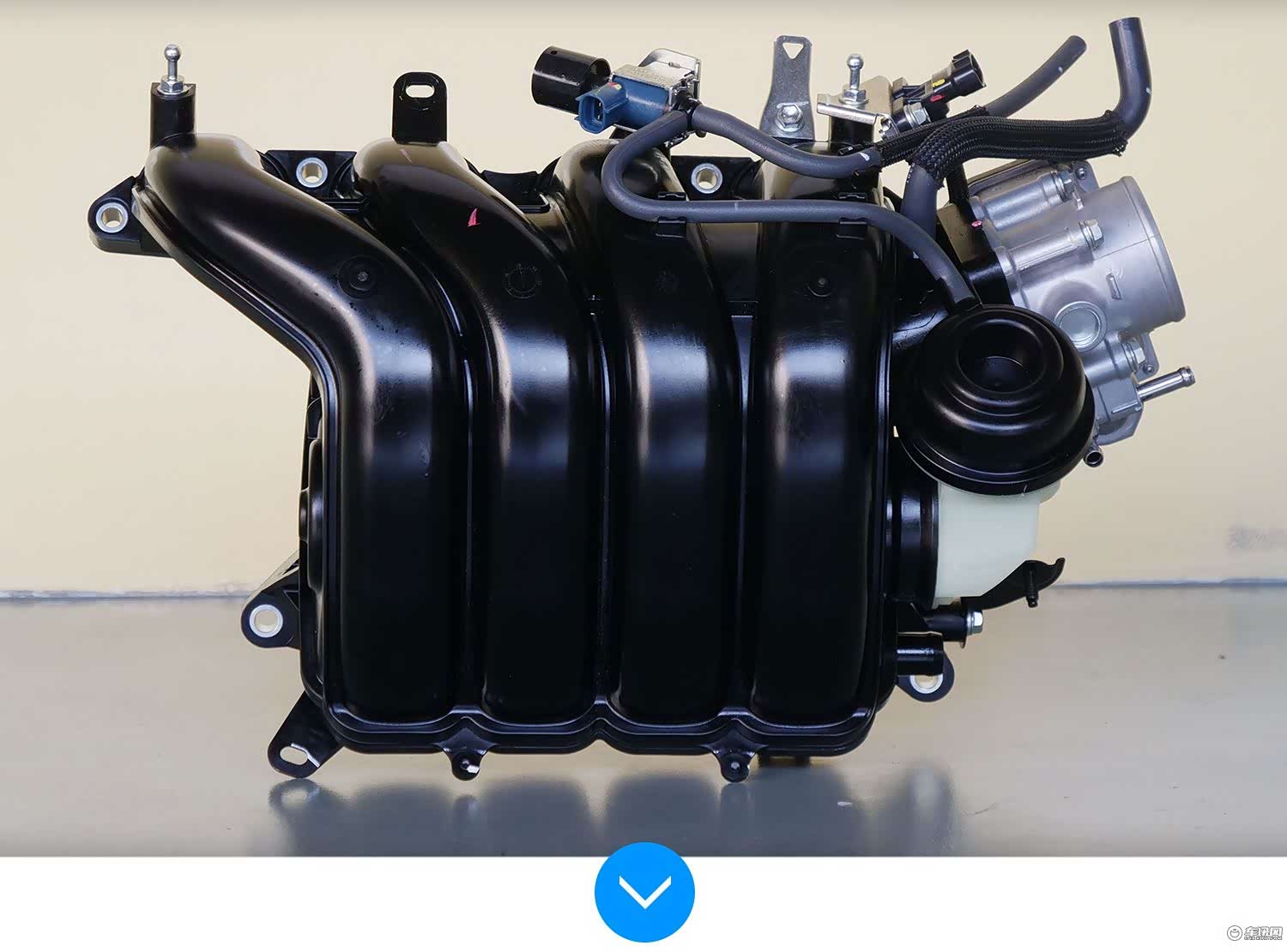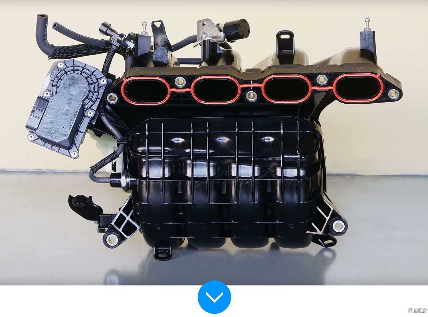进气歧管采用重量较轻的工程塑料制成,歧管内壁也较为光滑,减小了进气阻力。