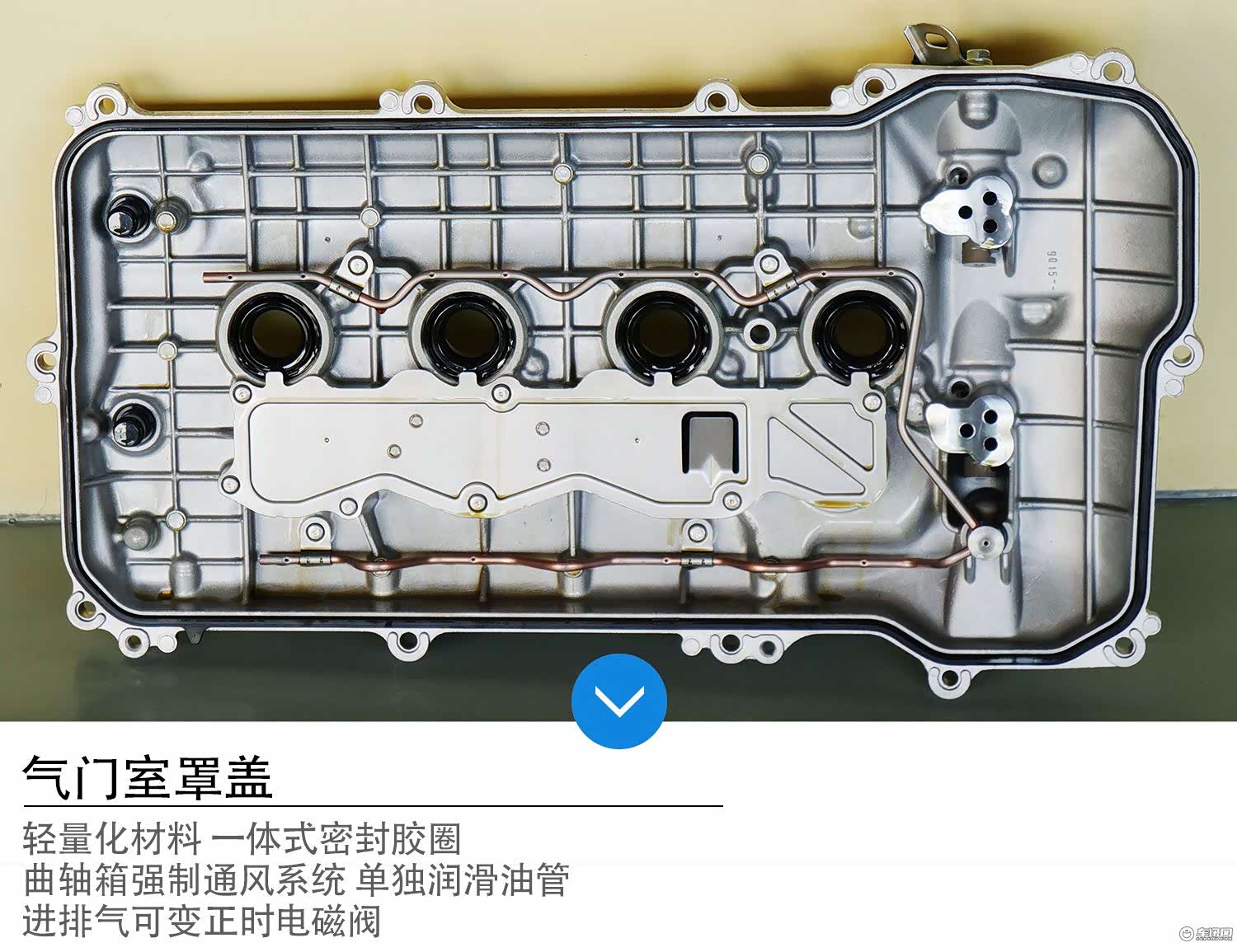 另外在气门室罩内侧还设置了单独的油管,这条油管接壤缸盖上的主油道,润滑油通过该管路为凸轮轴和连续可变气门升程机构提供足够的润滑。