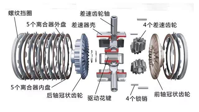 核心部件:托森中央差速器(A型)、电控多片离合器