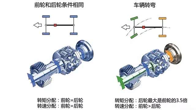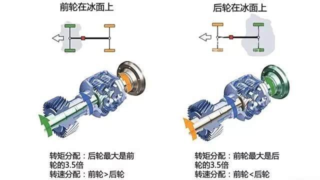 它的原理也跟A型托森差速器一样,依靠蜗杆与蜗轮之间传动不可逆的纯机械自锁原理。新差速器正常情况下,前后桥动力分配依然保持50:50,但动力分配范围更广,最多可分配80%的动力。
