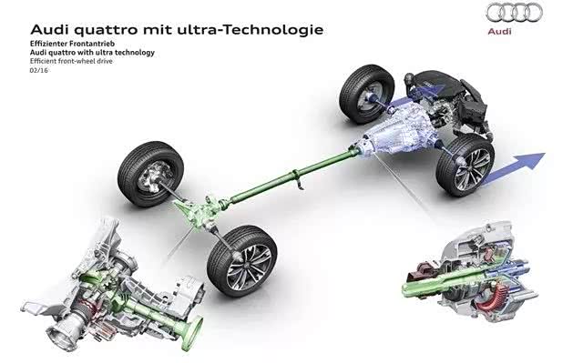 奥迪车型逐渐换代,同时伴随着quattro四驱系统的换代,这次,它被称为quattro ultra。实际上,这一代quattro已不再是全时四驱系统,而是一套采用电控多片离合器的适时四驱系统。