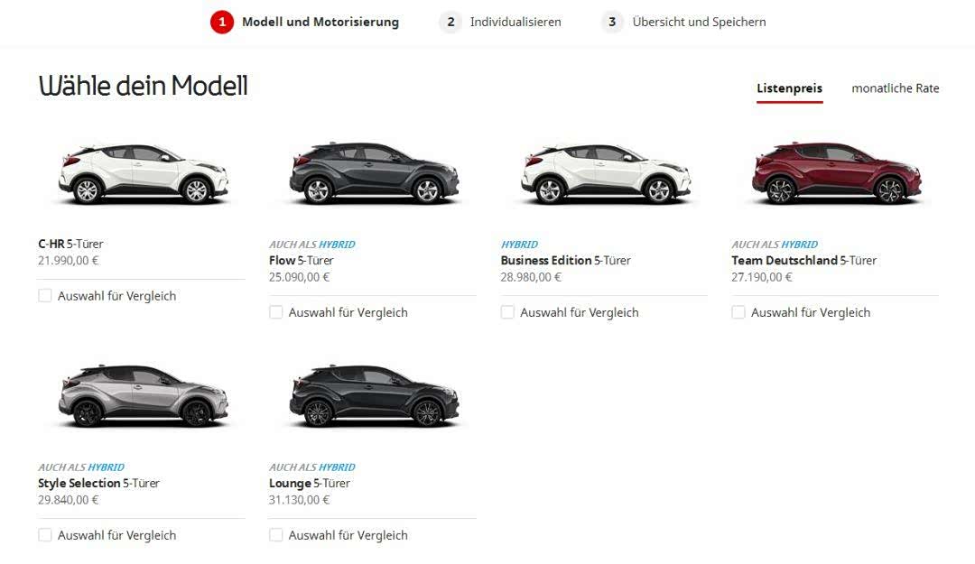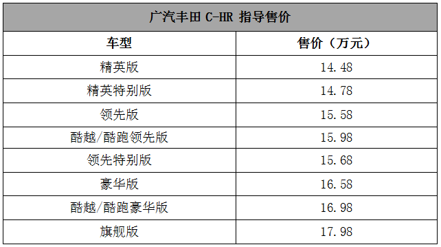 奕泽推出了3款车型,起步价14.98万元;C-HR推出了10款车型,起步价为14.58万元。