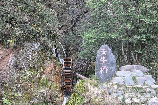天生桥:天生桥山岩叠嶂,长满野花绿树,因遍生兰草,幽香四溢,起名为兰花山,兰花为花中四君子之一,属兰科植物。在这里有风情万种的飞瀑,鬼斧神工的天然石桥,香飘万里的兰花山,险峻扼要的石壁栈道,组成了一幅绚丽多彩的山水画卷。