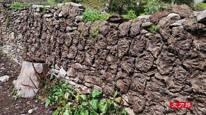 等刀刀走到近处一看,真真是哭笑不得。原来这些手掌印都是印在牛粪上,砌围墙的石头和晒干的牛粪颜色极为接近,远远看去,浑然一体,刀刀当然只看到墙上密密麻麻的掌印了。好吧,见笑了,献丑了,要被鄙视了,如此少见多怪,偏偏还喜欢胡思乱想,就这样还敢闯荡江湖?刀刀瞬间为自己的智商捉急了。不过……藏民把牛粪贴墙上应该是徒手吧?嗯,应该是……不对,肯定是,绝对是!难道他们还带了手套?好吧,这些牛粪挺争气,比糊不上墙的烂泥厉害。