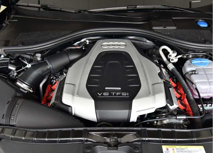 机舱布局合理,整体比较规整,各系统的维修检查便利性好。3.0T的V6发动机像一颗跳动的心脏纵向塞满了机舱,很有视觉冲击感。