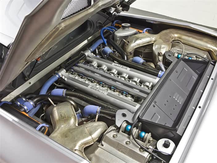 兰博基尼Diablo不过既然是一台Hyper Car,那动力才是整台车的灵魂所在,外观设计只是在为追求极致的空气动力学所服务而已。发动机部分,布加迪EB110采用了一台十二缸涡轮增压发动机,气缸缸径为81mm,冲程仅为56.6mm。如此低的冲程使得这颗V12的排量仅为3.5L,红线转数却高达8200rpm,堪比采用本田VTEC技术的红头发动机,独特的五气门结构也使得EB110在高转数下表现的十分平顺。再加上四颗涡轮的扶持,布加迪EB110 GT版的最大马力为560Ps,峰值扭矩610N•m,而性能更为极致的EB110 SS最大马力高达610Ps。