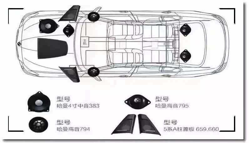 以上几款扬声器已经成为历史,或许在十几年前的车子可以见到,现在的最低配的扬声器是下面这款,由哈曼代工的高保真音响: