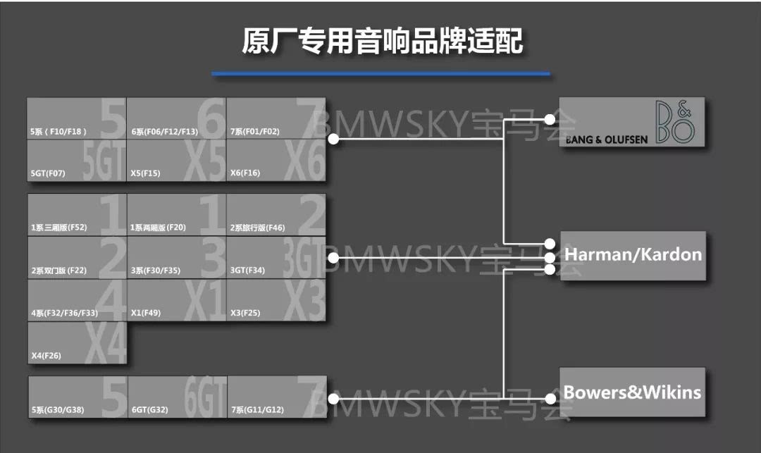 宝华韦健从新7系(G11\G12)开始与宝马合作,所以目前的宝华韦健仅适用于G系列底盘,比如新5系、6GT和新7系。