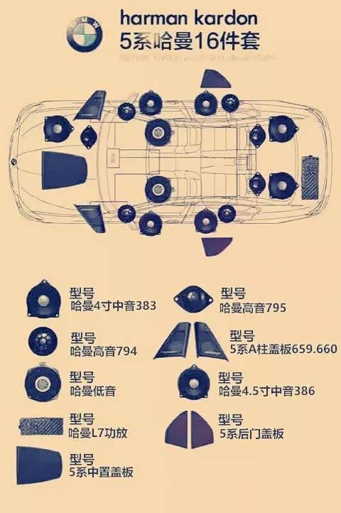 按照宝马音响分类来区分,属于中端等级,适配主机为阿尔派,除了535Li车型主机具备歌曲储存功能外,其他车型均不具备储存功能,扬声器配置: