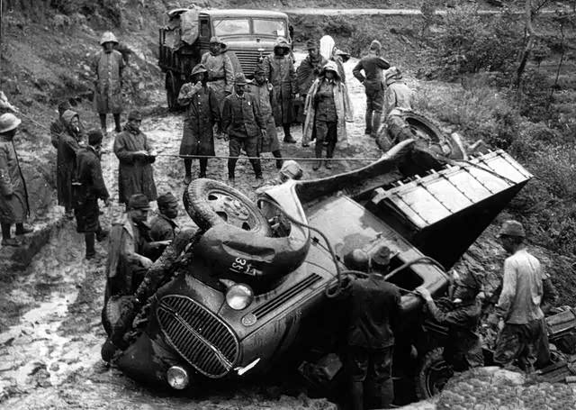 虽然在运载能力上,四轮卡车远胜三轮摩托,但复杂的中国地理环境和道路状况对于机械化兵团来说实在是一场噩梦,即便在车轮上绑上防滑链也避免不了翻车事故的发生。另外在日军大量采购V8-51四轮卡车后,美国人更是直接将生产G917T型四轮卡车的厂设在了日本本土,而这款车装备了连同德军、苏联红军在内的轴心国、同盟国两大对立阵营,可谓奇观。