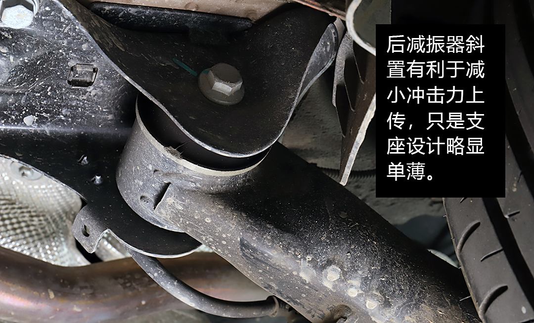 这样的后悬挂,看上去比较轻便,因为减轻了非簧载质量,对操控理论上会有一定提升,而且还兼顾了高扭转强度,所以,过弯时后尾也表现扎实,并没有什么摇晃迹象,当然,这和悬挂硬点支撑以及定位参数都有很大关系,只是这些很难用眼睛看出来。