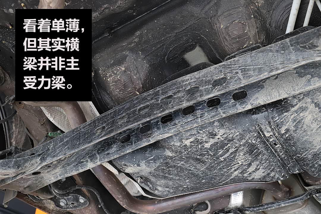 无论是前副车架还是后纵梁和车架连接的部分,柯珞克都使用了橡胶衬套,而且,衬套上还有奥迪LOGO,这些衬套也是为奥迪配套的零件,尤其副车架和车架固定处也使用软垫这在同级不多见,联想到柯珞克乘坐舒适性非常不错,悬挂能隔离较多路面振动,想必跟这些设计及高品质零件有很大关系吧。