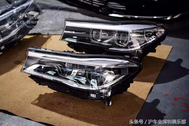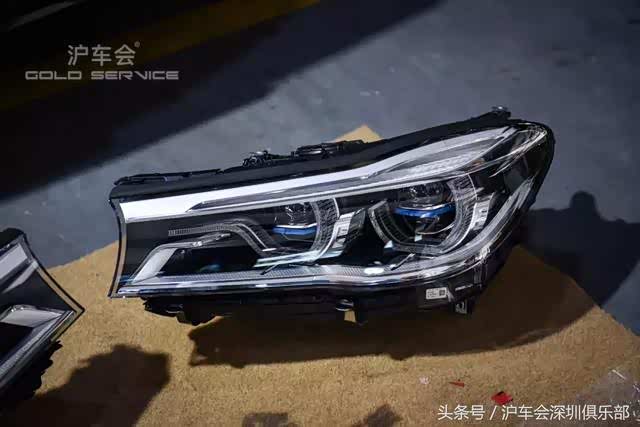 拆下的原车大灯与宝马新7智能激光大灯对比、充满着神秘色彩的蓝眼睛。