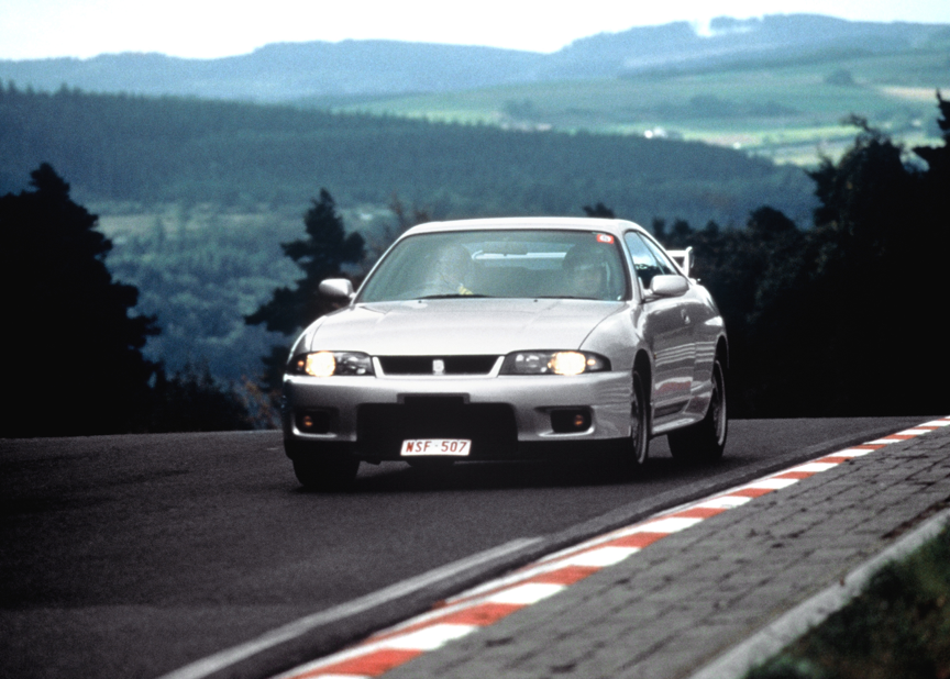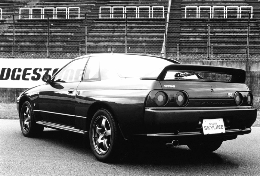 这是时隔16年之后的回归,“GT-R”这个熟悉的名字又回来了。R32采用了改进型的直列6缸发动机,而且还采用了ECCS喷射系统。最初生产的6台NISMO因为日本企业间的“君子协定”,最大功率被限制在了280马力,但实际上它原厂状态下的RB26DETT发动机也可以生产316马力的最大功率。经过调教的BNR32马力直升到500+,0-100公里/小时加速随便进5秒,四分之一英里的加速时间更是进入了13秒(1989年的四分之一英里,13秒是一个很大的坎儿)。当年的R32 GT-R称霸日本巡回车锦标赛,29场比赛29场胜利,从1989年到1993年包揽系列赛冠军。