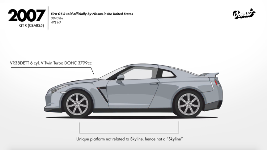 这是历史上“GT-R”第一次作为单独命名方式的车型,但它继承了Skyline GT-R的传统,比如6缸涡轮增压发动机、圆形尾灯、四轮驱动等等。