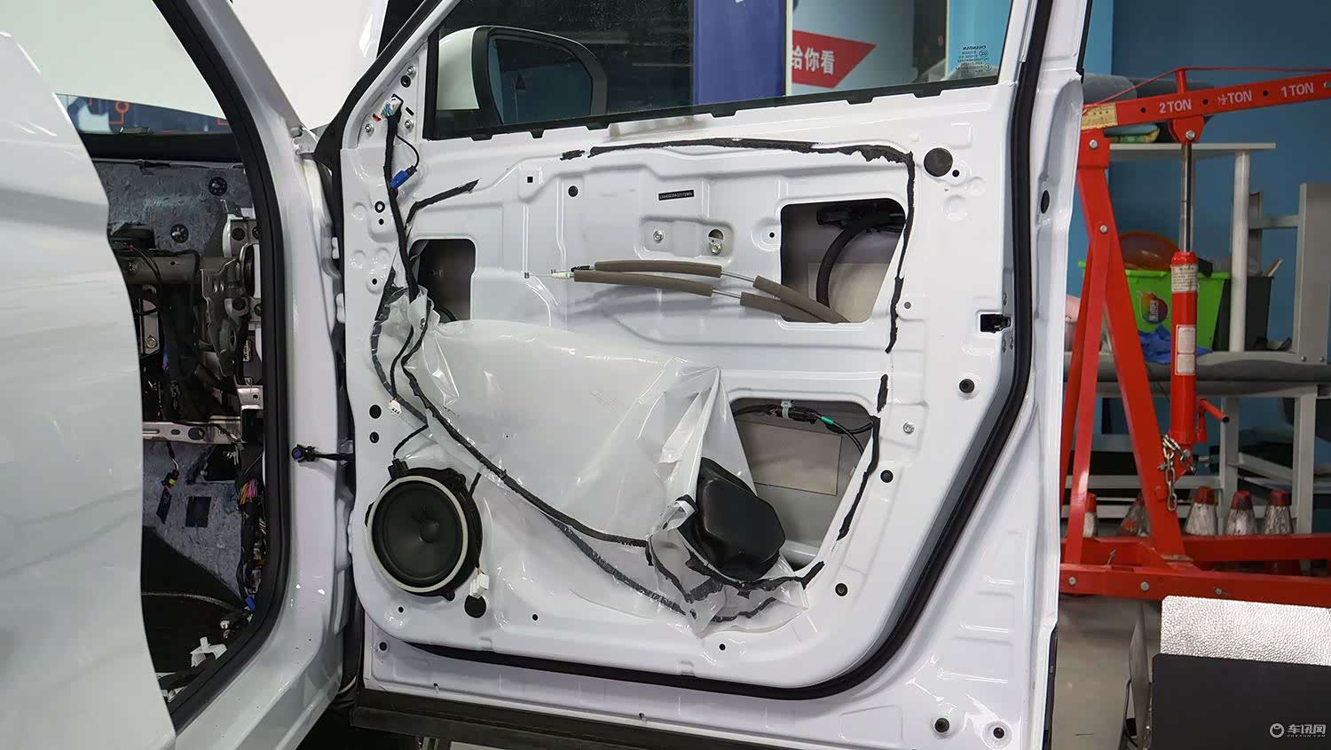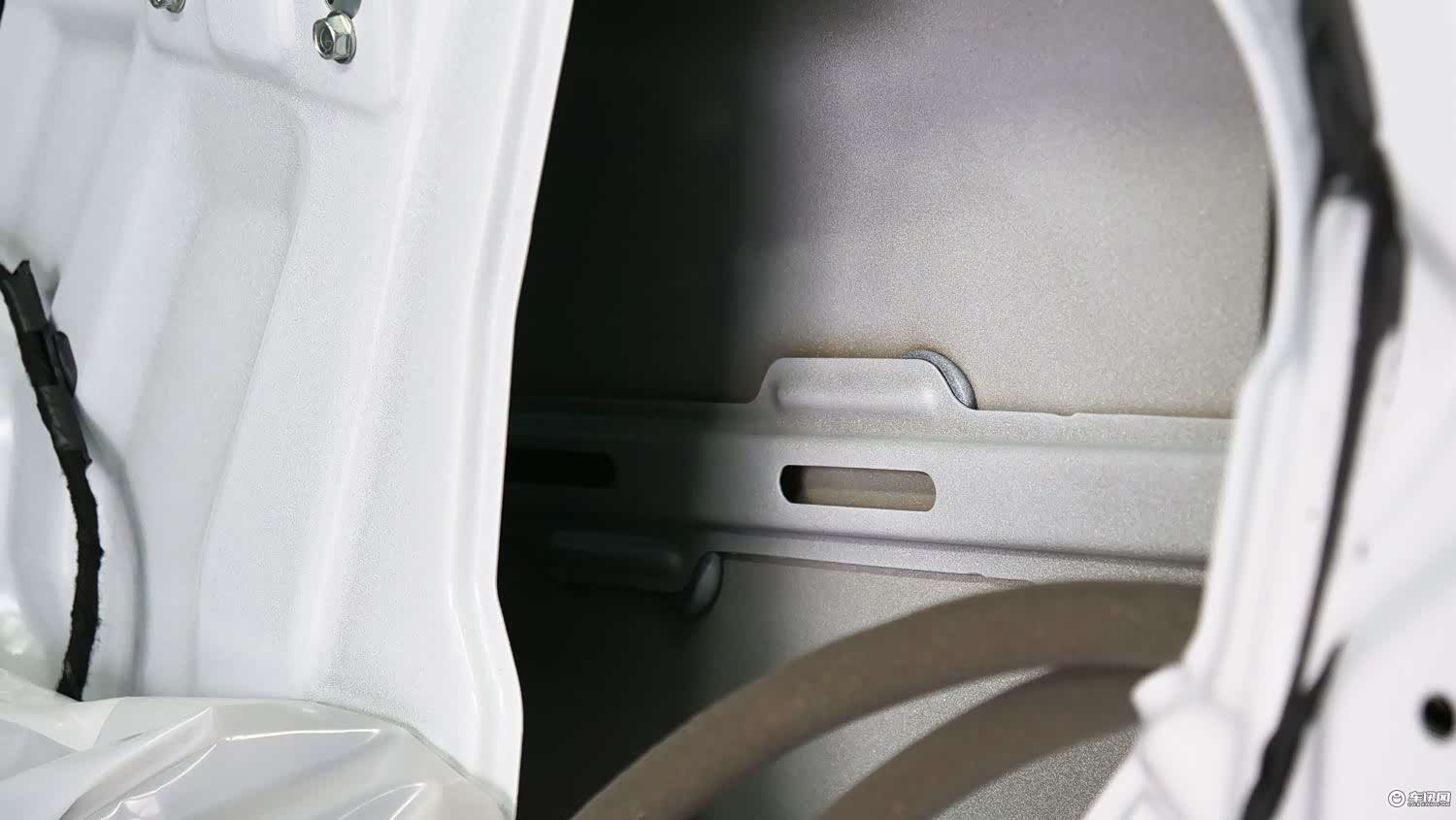 新CS75前车门为拼接形式,车门内部下方斜置了管型防撞梁,内部上方横置了帽型加强筋,局部钢板还黏贴了止震贴,避免行驶中产生振动导致噪音。