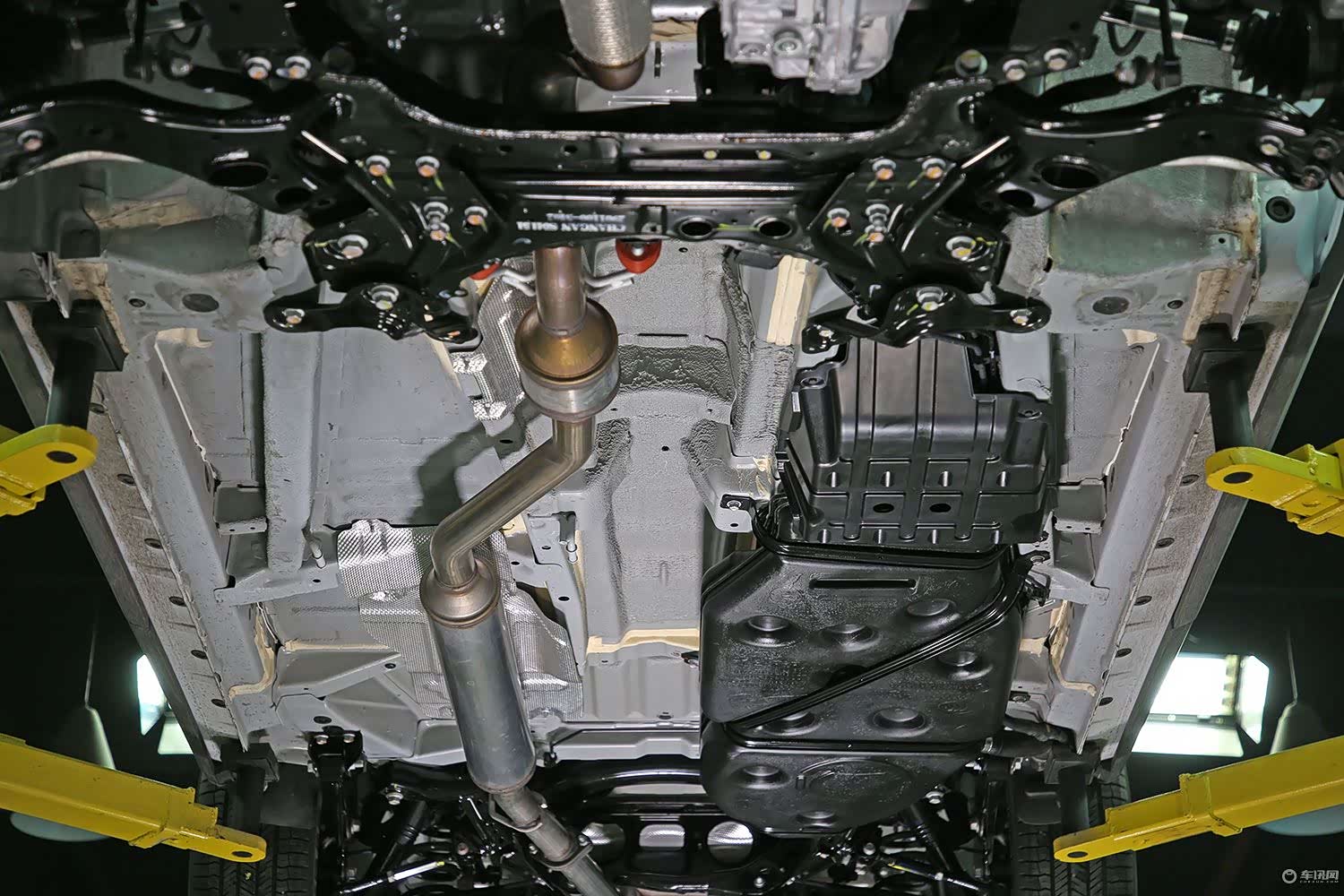 上图为新CS75的车身底板,我们能看到明显的三道贯穿式横向加强梁,该结构及底板背面的横向加强结构就是支撑起乘员舱的“骨架”,接下来我们再看看新CS75的底盘各部表现。