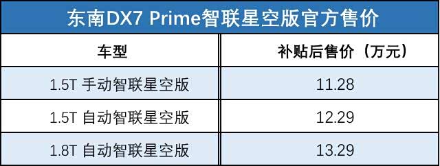 上周,东南汽车新增了三款东南DX7 Prime车型,名为智联星空版;分别为1.5T手动、自动和1.8T自动版。三款新车的定位在原有DX7 Prime中属中高配车型,旨在为消费者提供更多的选择。智联星空版的主要卖点是搭载的10英寸LCD悬浮式多媒体大屏;1.5T车型搭载了一套智能车联网系统,支持车载WIFI、GPS导航、手机互联互控、语音交互等功能;而1.8T搭载的是另一套系统,名为SEMI-Ⅲ东南多媒体触控智联网系统,在1.5T的功能上,还增加了手机APP远程控制。