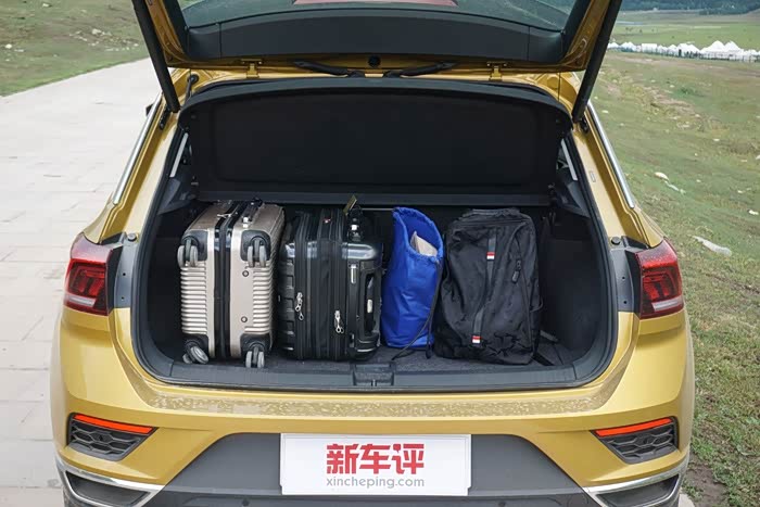 受限于很短的后悬,加上倾斜的尾门玻璃,底下备胎又把地板顶得很高,T-ROC的尾厢空间确实不大。不说跟普通的A级三厢家轿(宝来、朗逸)比,就算和同级的缤智、劲客比,T-ROC的尾厢垂直高度也是捉襟见肘的。遮物板下方大概能放进3-4个登机箱,四个人在省内来个自驾游没什么问题,但逢年过节大采购,实用性就不够了。所以要买T-ROC的朋友,需要考虑清楚自己对尾厢的需求程度。