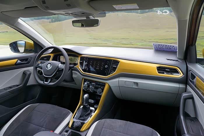 限于体型,小型SUV的车内空间都不会太大。和买紧凑级SUV的买家相比,前者的消费群体会更注重Style。除了源远流长的甲壳虫,和经历一代迷失后再次苏醒的CC,大众还真没什么有个性的车。幸好,虽然挂着VW标志,单看前后车灯也没特别亮眼,但T-ROC整台车看着还是挺个性的,当然这跳脱的车身颜色也有功劳,还有黑、白两种车顶可选。T-ROC车身不高,后门玻璃倾斜,其实观感类似一台Cross风格的两厢车,而不像SUV。极短的前后悬和四道明显隆起的轮眉,让它看着又比一般的城市SUV更有肌肉感。