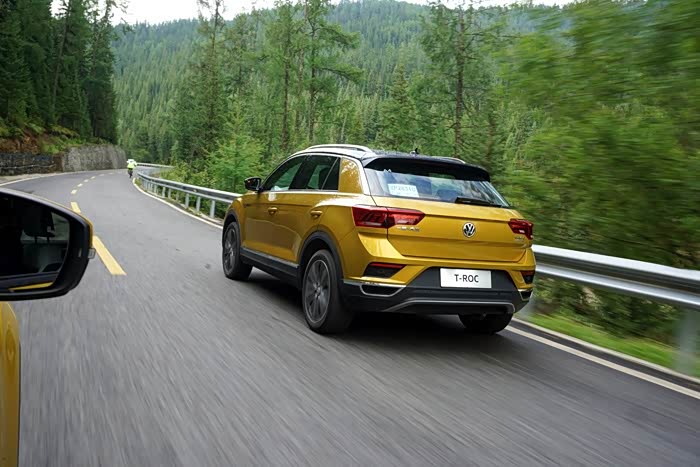 车身加长,是不能缺席的本地化调整。但T-ROC的悬挂风格,倒是挺有欧洲的感觉,没有一味求软。在新疆喀纳斯多弯的山路里试驾,轿车般的坐姿高度加上富有支撑性的悬挂,真有一种开着高尔夫跑山的错觉。不过跟高尔夫相比,T-ROC方向盘中间的虚位感觉更大,还是透露出了一点SUV的取向。另外一个很大的差异,就是这台1.4T高功四驱版T-ROC的动力。