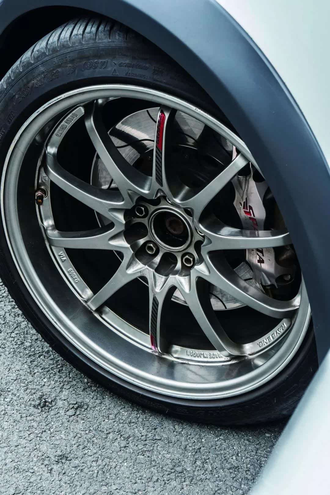 江湖也有传言:“簧下一公斤,簧上十公斤。”车主居然“斤斤计较”到螺母,特别定制了一套钛合金螺母装车。其中让Moulder最喜欢的莫过于这套RAYS限量CE28N Genesis轻量化轮毂,跟以往的产品相比,它拥有更强的刚性以及更轻的重量,加上碳纤维饰条,足以表明这套轮毂的身份。虽然拥有这套轮毂的过程也让他吃尽苦头,但最大的惊喜是Moulder后来才发现这套轮毂是全球限量500套限量版本。借用他的话来说:“如果我那天不下定决心去买的话,可能这辈子都不会拥有了”。