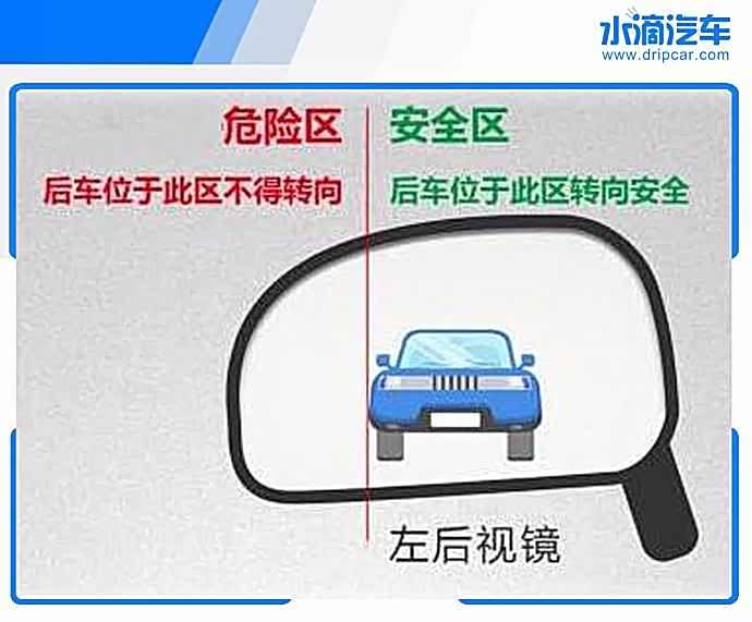 后车在安全区,位于后视镜中央,说明后车与你的车车距有15-20米,在确定右侧无其他因素外,可正常进行转向操作,不需要任何担心。