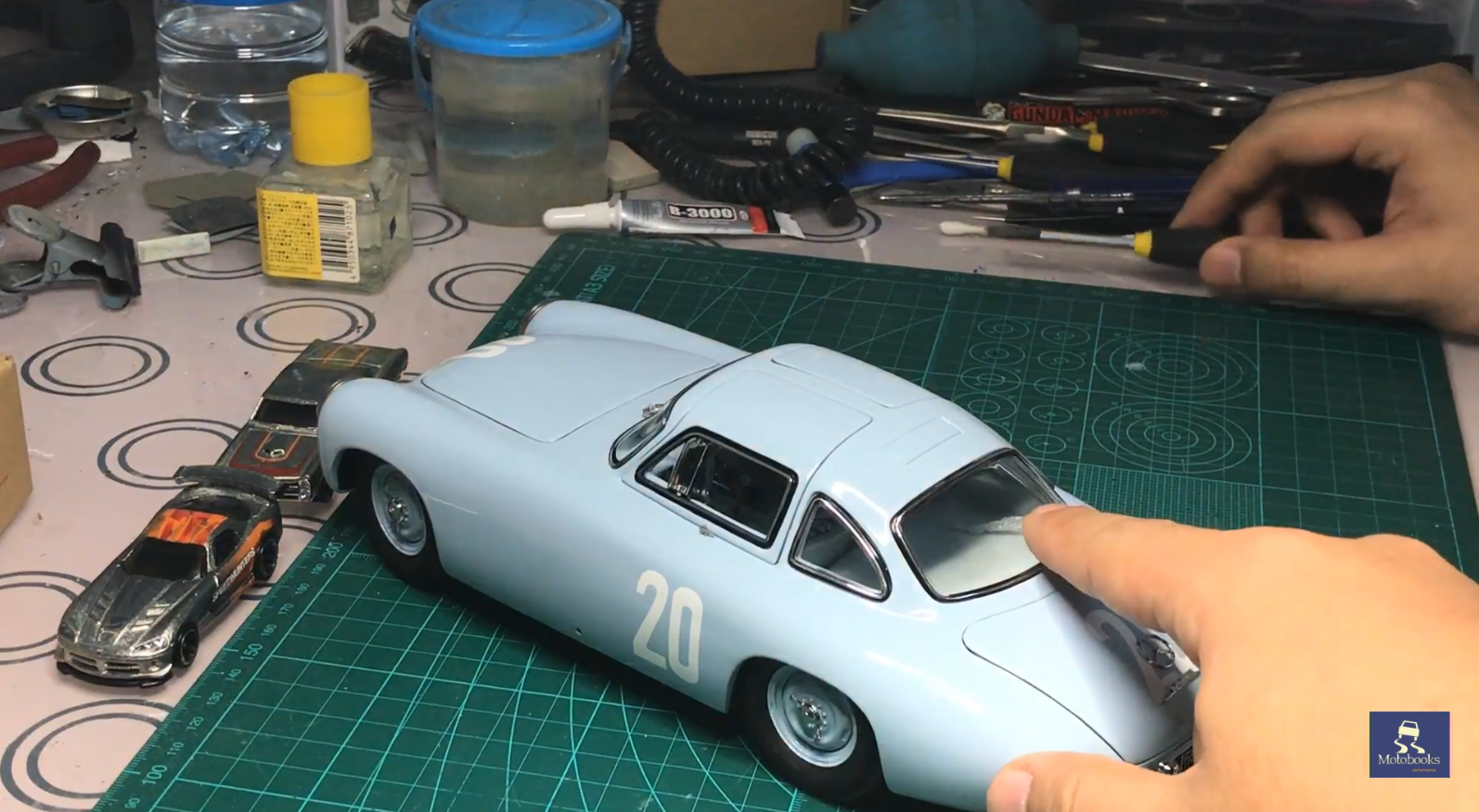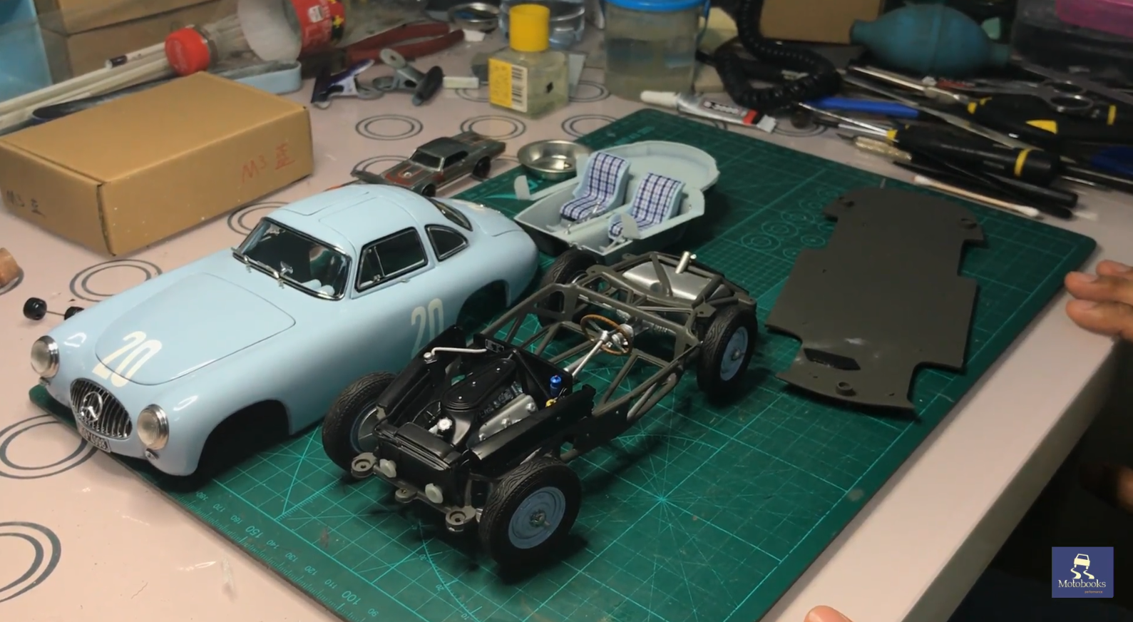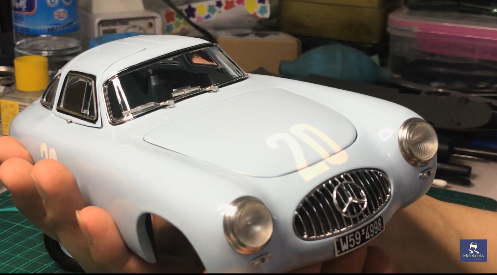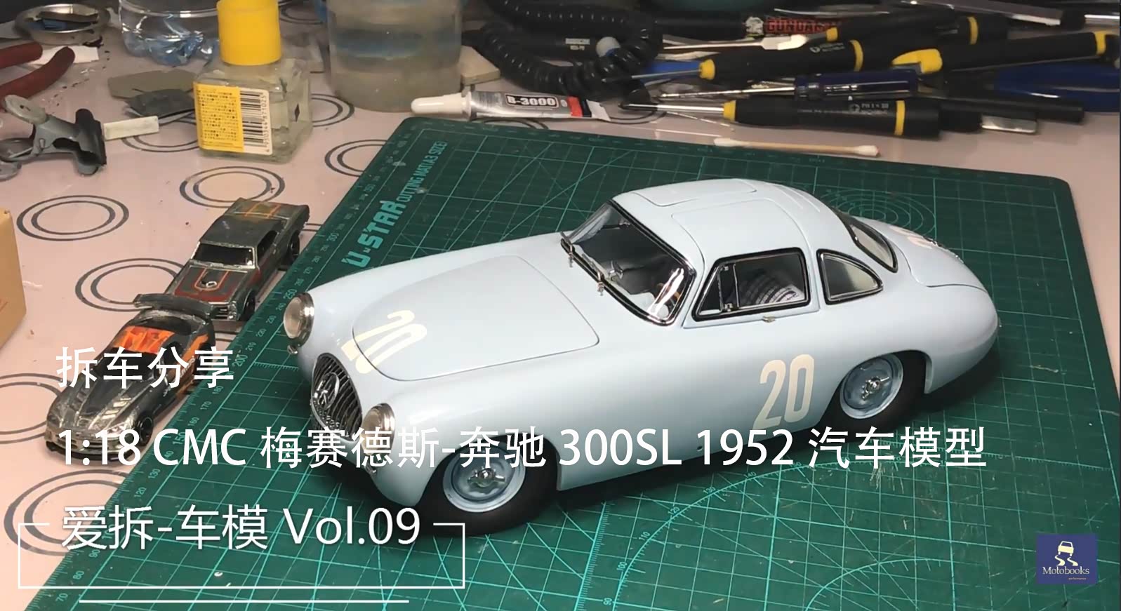 这是一台 CMC 的 “复刻” 汽车模型作品,产品编号 M-159。车型题材是梅赛德斯-奔驰 Mercedes-Benz 300SL W194,涂装方案取自 1952 年 Grand Prix Bern 伯尔尼大奖赛 20 号赛车。因为本节目主旨为拆车展示,所以相关考古资料暂不深挖,感兴趣的同好可以到网络上搜来学习一下。