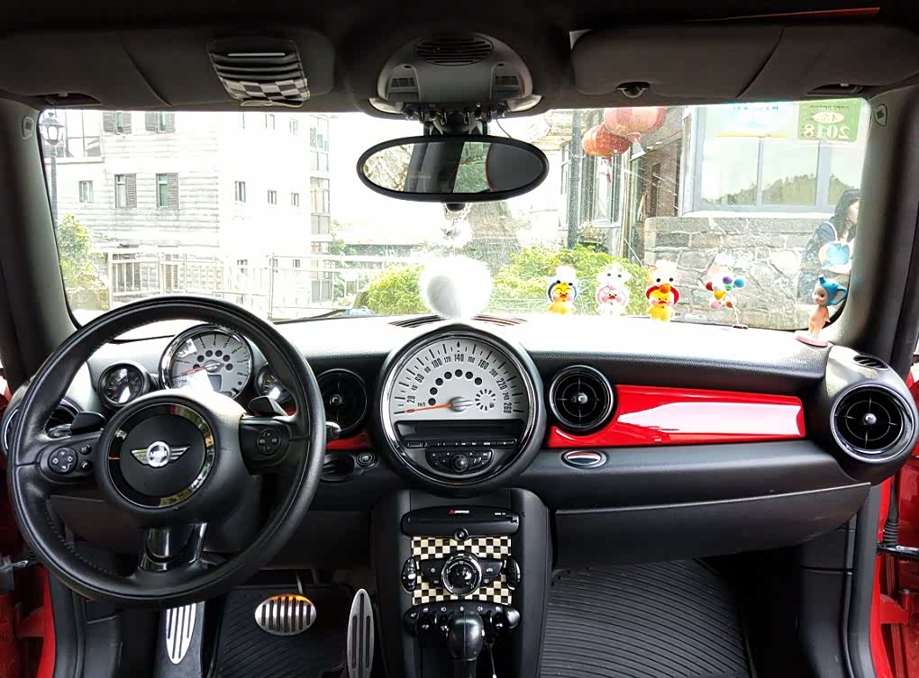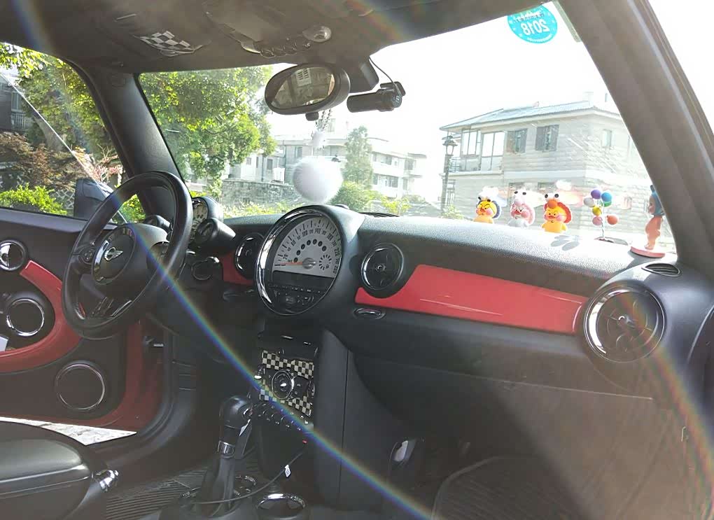 原先车主有考虑过是不是要更换成新一代带大液晶屏幕的新MINI时速表,后来咨询了宝马原厂配件价格要上万之后放弃了,但这其实也是一种缘分,事实证明老款的MINI大表还是经典的。很多新MINI车主都挺羡慕这块老款仪表,毕竟这么小的车没有倒车影像倒车也··没什么特别困难。中国任务版车型同样在B柱安全气囊发生器位置安装了7色氛围灯。