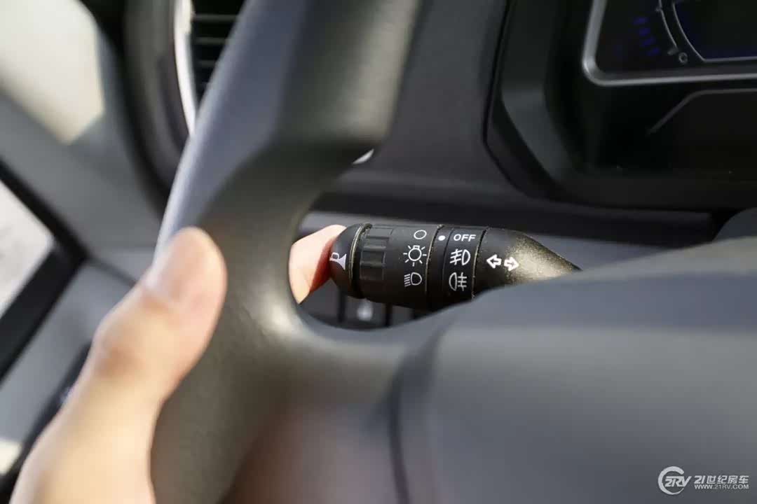 还有一点与家用轿车不太一样的是喇叭的位置,大多数家用轿车都将喇叭的控制机构集成在方向盘中央,而铁程房车则将喇叭按钮与大灯拨杆设计在一起,刚开始使用时需要适应一下。
