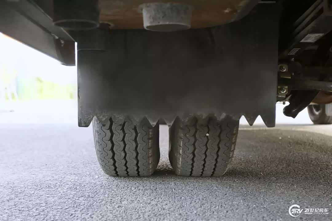 铁程房车底盘后桥采用双排轮设计,不仅能够提高底盘的承载力,轮胎与地面更多的接触面积还能够提高车辆的行驶稳定性,加强抓地力,安全性更高。