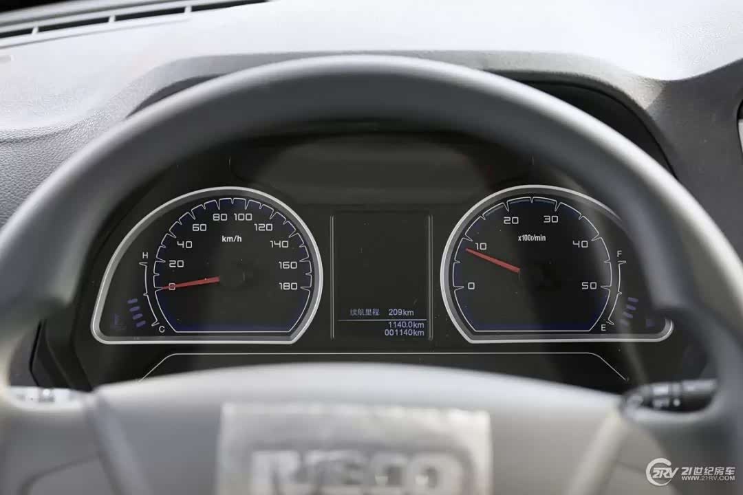 从实拍可以看出铁程房车所使用的依维柯宝迪底盘属于低配版,方向盘未配备多功能按键,不过铁程房车同样配备了定速巡航系统。