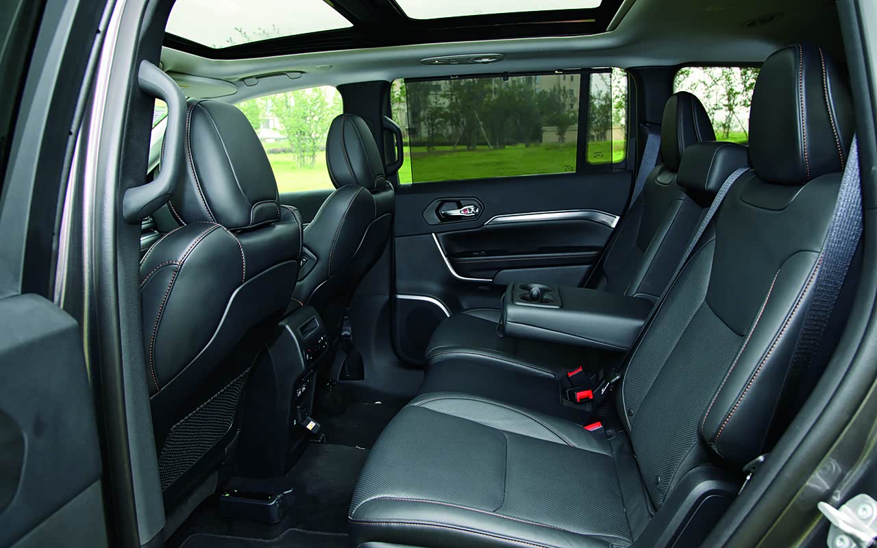当然,第三排的空间表现虽不是大指挥官的优势所在,但角度可调的厚实靠背和柔软的头枕,也能在最大程度内提升第三排座椅的乘坐舒适性。而近乎垂直的开门角度以及电动尾门的配备,则能让你感受到Jeep也可以是贴心的暖男。
