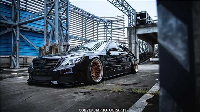 今天的故事主角,这辆S400相信大家并不陌生。在一年前,车主维哥用自己的奥迪R8和朋友换车之后,将本应该是行政座驾的奔驰S级,打造成了宽体低趴的模样。
