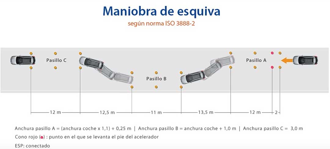 另外根据标准,试验车辆在以预定车速通过起点2米后驾驶员需松开油门踏板,并在不借助油门和刹车的情况下仅仅通过调整方向通过测试;