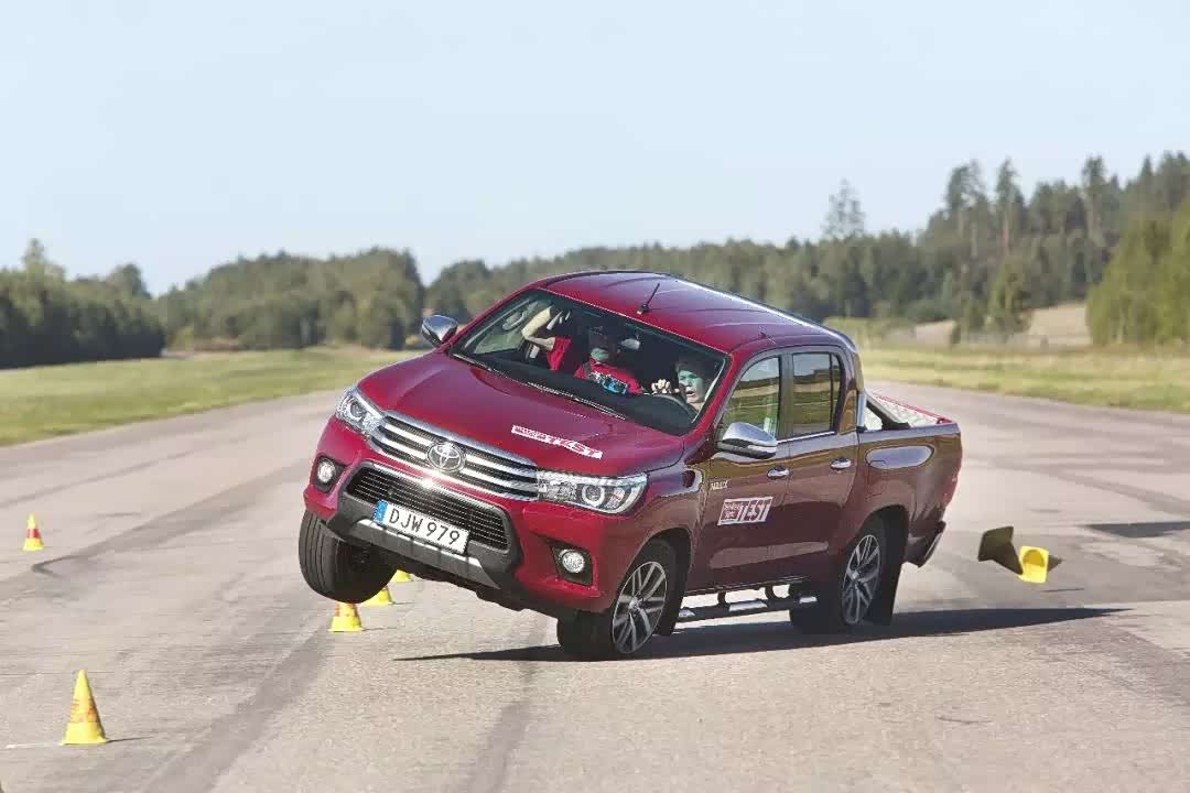 另外皮卡也算是麋鹿测试的翻车常客。比如丰田神车Hilux,虽然当年在经历了三剑客的极度摧残后得以幸存,但最新款车型在面对麋鹿测试时依旧逃不过险些翻车的命运。