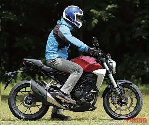 ▲照片中的骑士身高175cm、体重62kg。虽然坐垫高度比CB250F的780㎜高出20㎜,但是因为CB250R的车身较为修长,所以双脚着地性非常优异,骑乘姿势也只有上半身会稍微向前倾而已。