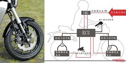 ▲CB250R的ABS系统配备了前后独立的IMU惯性测量系统,而这也是IMU首度配备在250㏄排气量的车款上。