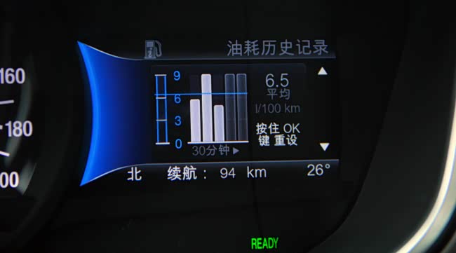 实测后发现,使用220V充电桩充满电量需要3小时左右。而且,蒙迪欧在充电时,车机不能显示车辆充电状态,我们只能依据充电口四个LED灯,判断是否充满电量。相比BYD秦的完善的充电信息,有一定的差距。