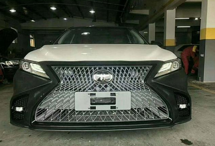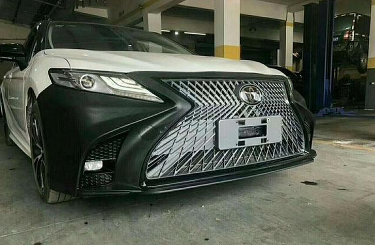 从图片来看,整个前脸的契合度非常高,配合第八代凯美瑞类似刀锋的大灯造型,丝毫不显违和感。丰田车标也完全悬浮在中网内部,和雷克萨斯ES上的一模一样,尽管保险杠还没有上漆,但是也能想象得出完成后给人的优雅感觉。