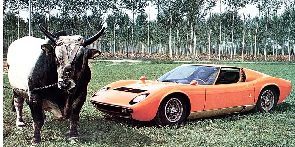 兰博基尼Miura于1966-1973年间量产,它被称为第一款真正的超级跑车。至于原因?那因为它是第一辆使用中置引擎、双座布局的超级跑车,而后来超跑的“标准”配置也是跟风Miura。想当年,Miura可是实打实的“最快量产车”,它背着一具横置的3.9L V12引擎,搭配5速手动变速箱,有着350ps最大马力。