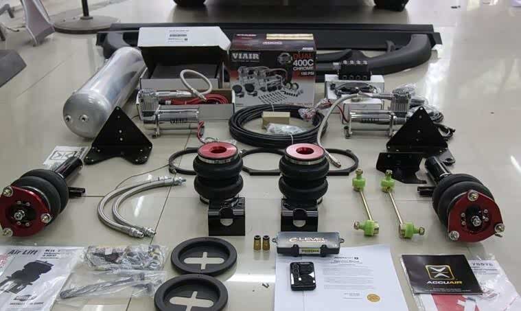 这个阶段基本上是降低方法的终极绝招了。支撑车身重量的弹簧更换为气囊。通过车载空气压缩机(气泵)冲入或放压,车子就可以通过控制器,随时升高或降低车身。