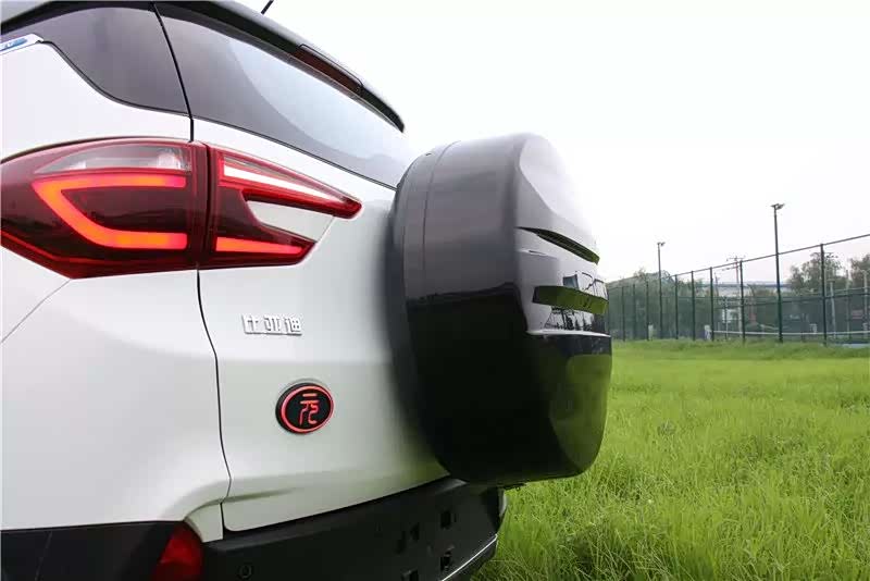 车身尾部一如既往的搭配了元特有的小书包备胎,但外挂样子相较于普通版更加简洁,很讨喜。