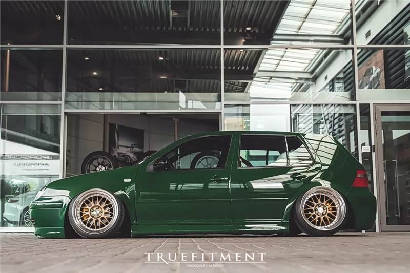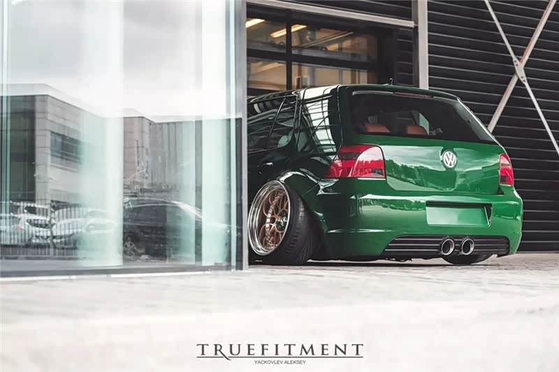 改装圈儿里,总有一些人对于历史而难以忘怀,一种落叶归根的怀旧情结在不断的驱使着他们对经典老车进行改装,让他们在今天也能焕发自己的光彩。这次带来的这款大众高尔夫MK4就是这样的一台车。我们可以看到,这台高尔夫第4代车型被车主极力掩盖住了岁月的沧桑,整车换装了墨绿色喷漆,同时还更换了Work Meister M1的轮毂,香槟金与亮光轮边给人一种抢眼的感觉。即使是经历时间的沧桑,也难以掩盖住它改装的独到之处。
