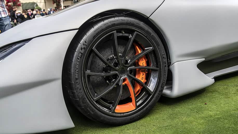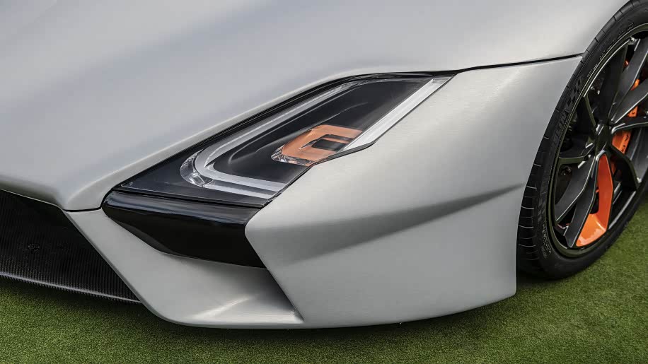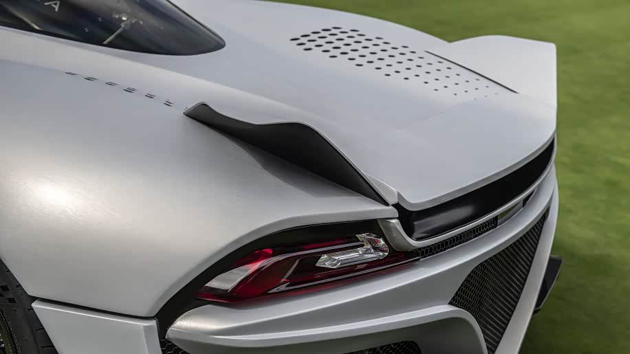 新车前脸设计有巨大的进气口,车身和底盘则均采用碳纤维材质打造,采用空气动力学优化的车身使其风阻系数仅为0.279Cd。后轮拱凸起十分明显,看上去肌肉感十足。