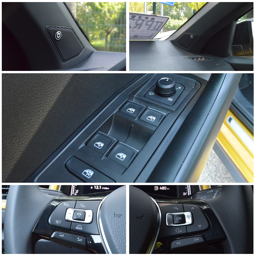 方向盘两侧的控制按键非常丰富,仪表盘界面选择、多媒体控制、定速巡航、车载电话等功能都可以在双手不离开方向盘的条件下实现盲操,用起来非常方便。四门车窗一键升降、后视镜电动调节/加热也做到了全系标配,这一点值得点赞。方向盘后方还配备了换挡拨片以提升驾驶乐趣,虽然是塑料材质,但手感还是非常不错的。最值得一提的是,在音响方面探歌所提供选装的品牌是beats,在车载音响上见到这一品牌还是非常罕见的。不过在实际体验并没有给人以非常惊艳的感觉,中高音表现还算可以,低音就非常差了,所以这项配置小优并不推荐大家选装。