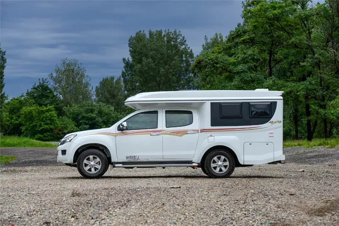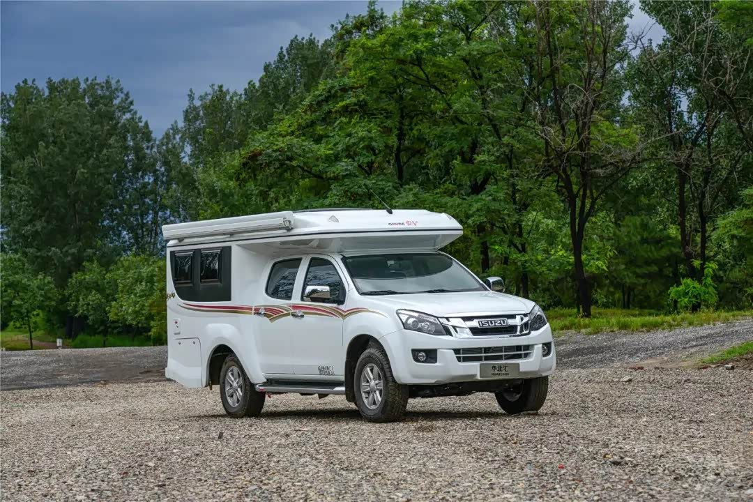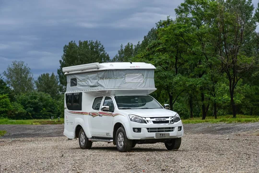 目前市场上主流的D-max皮卡房车是一款升降顶房车,指导价35.5万(根据选装配置的多少,价格也会有浮动)。