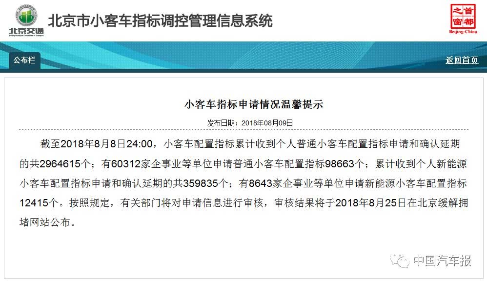 日前,北京最新一期摇号申请人数正式对外公布。截止到2018年8月8日24时,累计收到个人普通小客车配置指标申请和确认延期的数量一共296万个,新能源小客车配置指标申请和确认延期也超过35万个,对比上一期,增加7万余人。这7万人想获得新能源汽车指标,时间将更加久远。目前,今年的新能源汽车指标已经发放完毕,刚刚排队想要获得新能源汽车指标的消费者,需要等待7年,即至2025年。