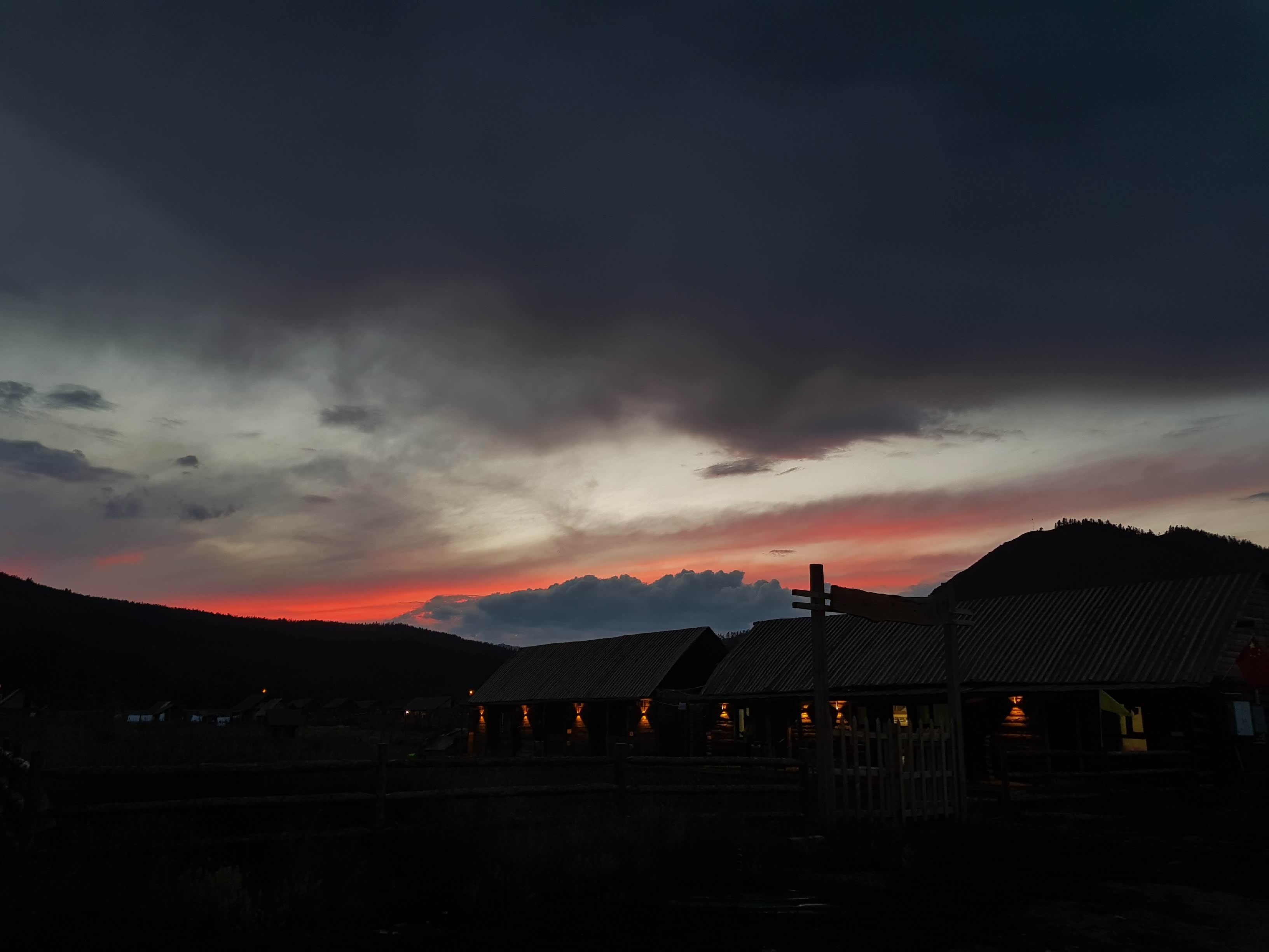 运气很好,回到小木屋又看到了火烧云。
