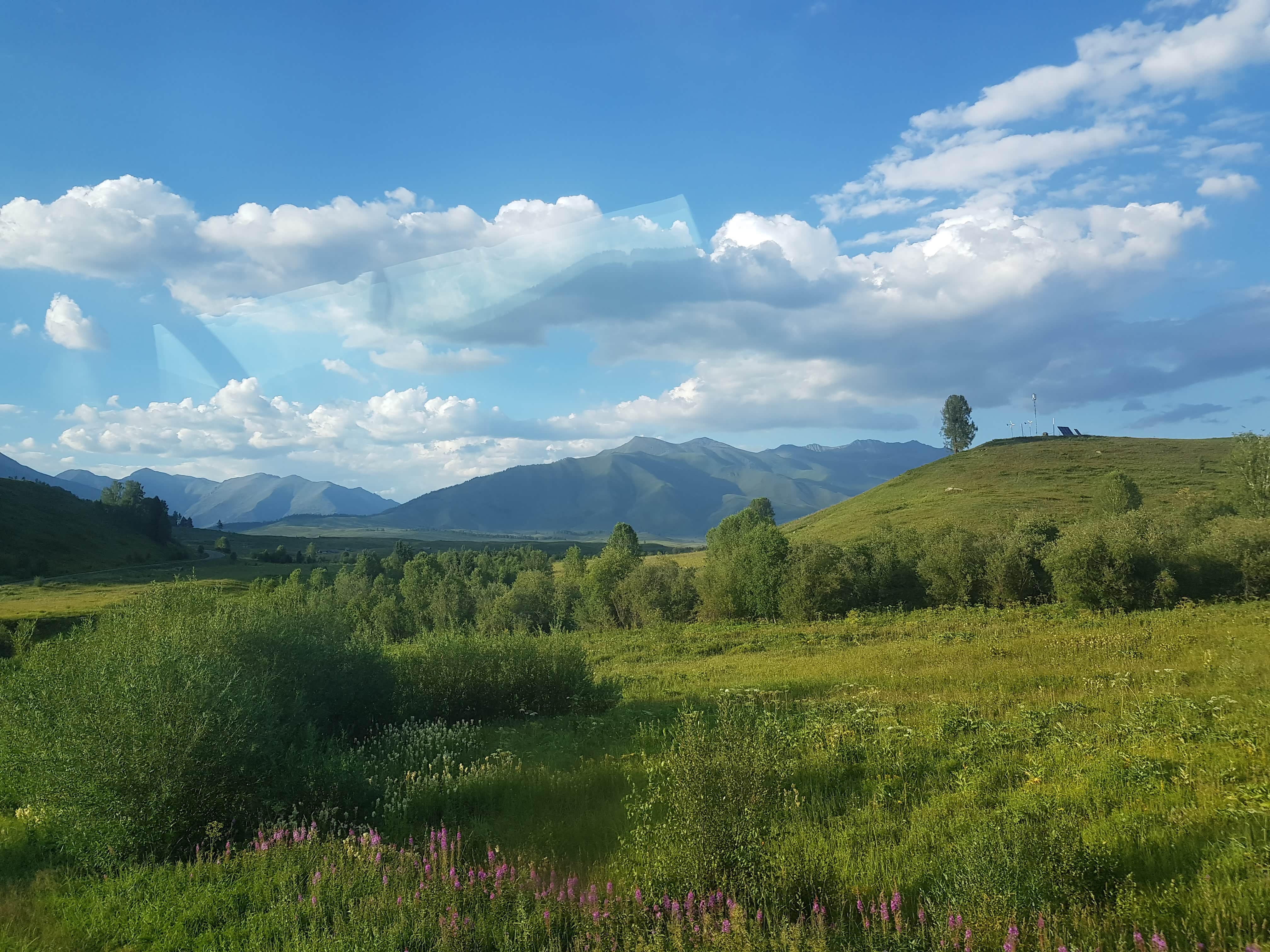 这是从布尔津出发时的干粮储备,有点乱···禾木村就是在喀纳斯方向,快到了的时候分路右边下山市禾木村,左边上山就是喀纳斯景区。布尔津往前走,树木越来越茂盛。后面翻越一座大山,开了两天笔直的好路,终于看见盘山公路,对于重庆人来说,十分的亲切,哈哈~